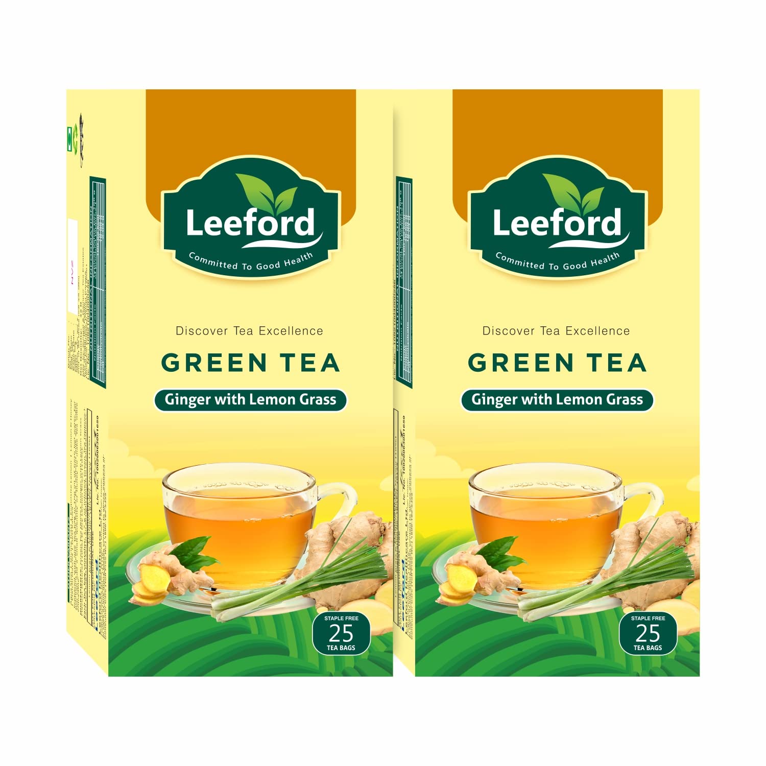 Leeford Green Tea Ginger With Lemon Grass - 25 Bags (Pack of 2)