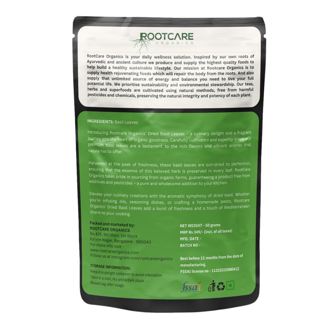Rootcare Organics Dried Basil Leaves - 50 gms