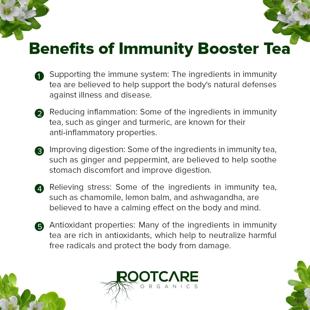 • Pure and Organic: Crafted from 100% organic ingredients, our Immunity Booster Tea is free from artificial additives, ensuring a pure and authentic herbal blend.