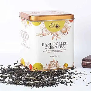 - SHELF LIFE: 730 Days; Ingredient Type: Vegetarian; Quantity: 150g; Package Contents: 1 x 150 gram of Hand Rolled Green Tea, Packing Type: Tin Container.