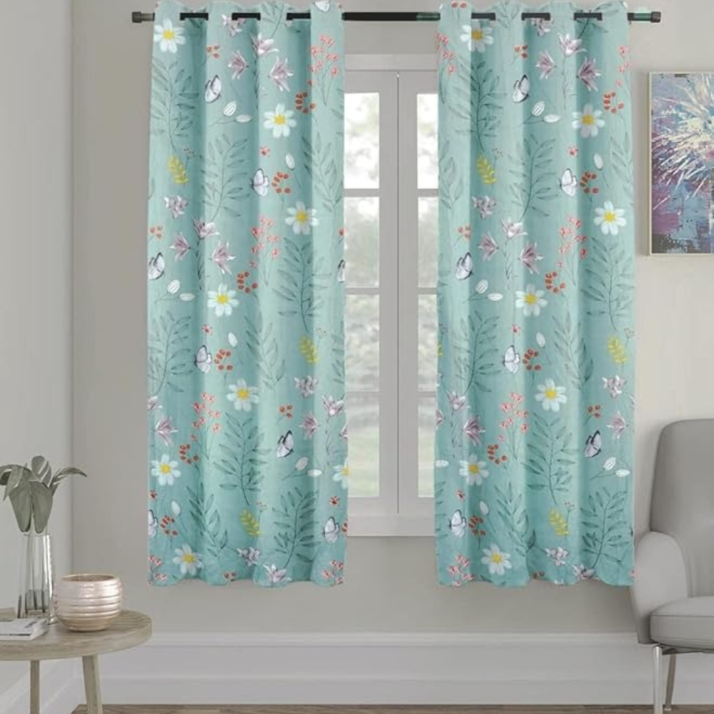The Home Style Supersoft Printed Cotton Brushed Microfiber Eyelet Window Curtain 4x5 Feet Grommet Curtain for Living Room