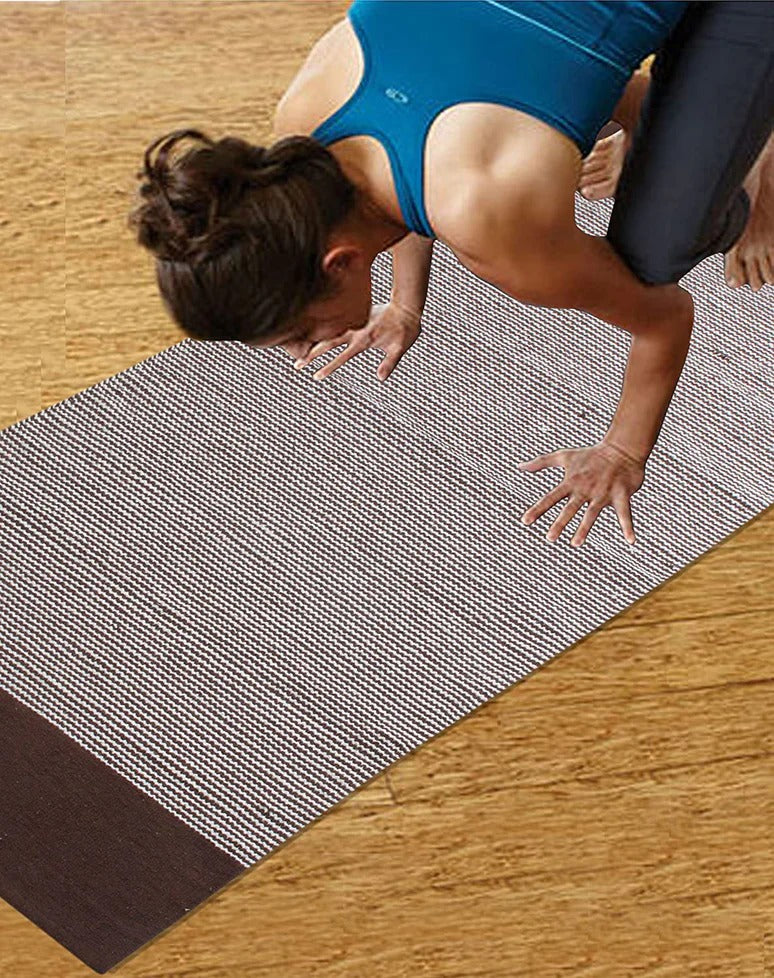 Saral Home Mid Stripe Cotton Anti Slip Yoga Mat/Runner