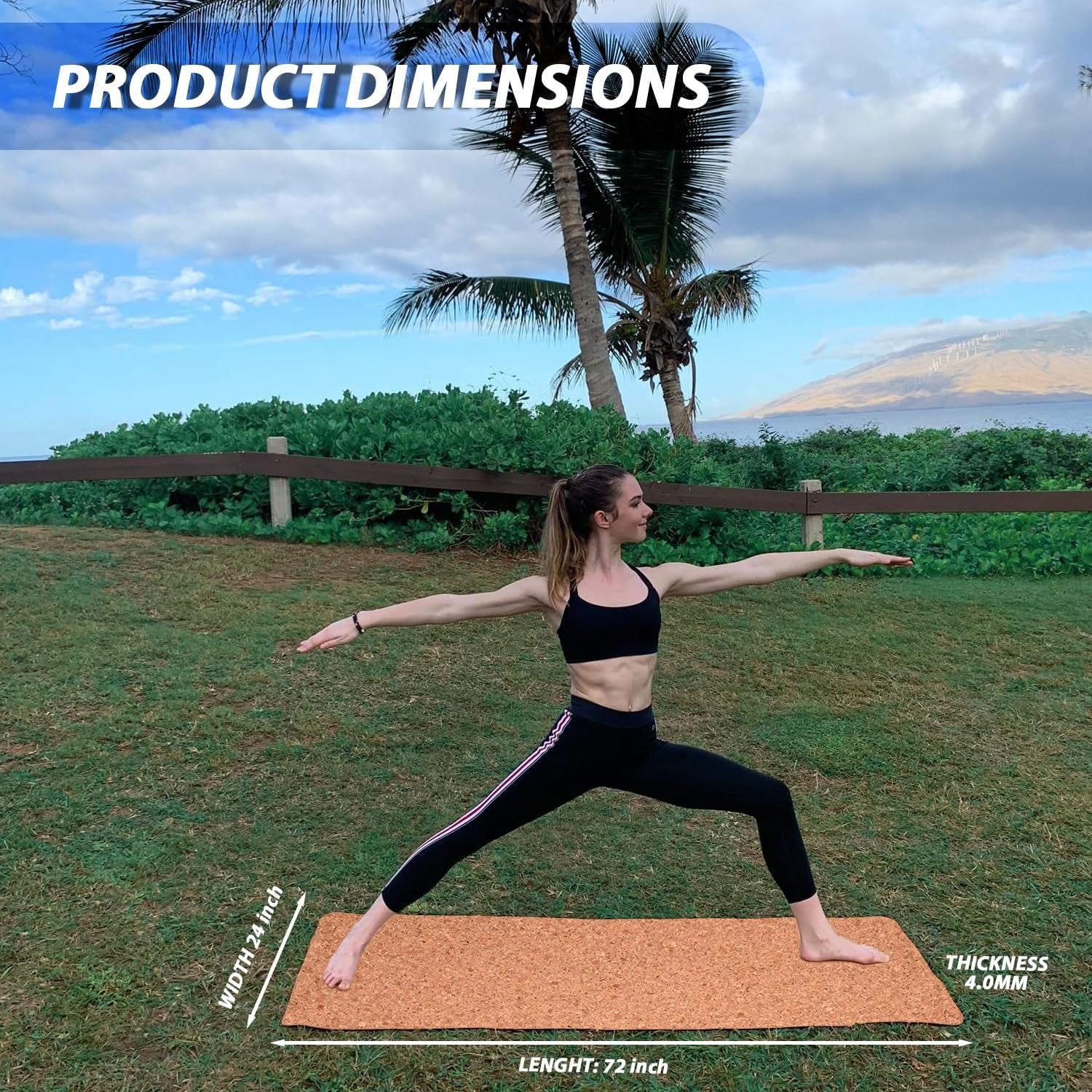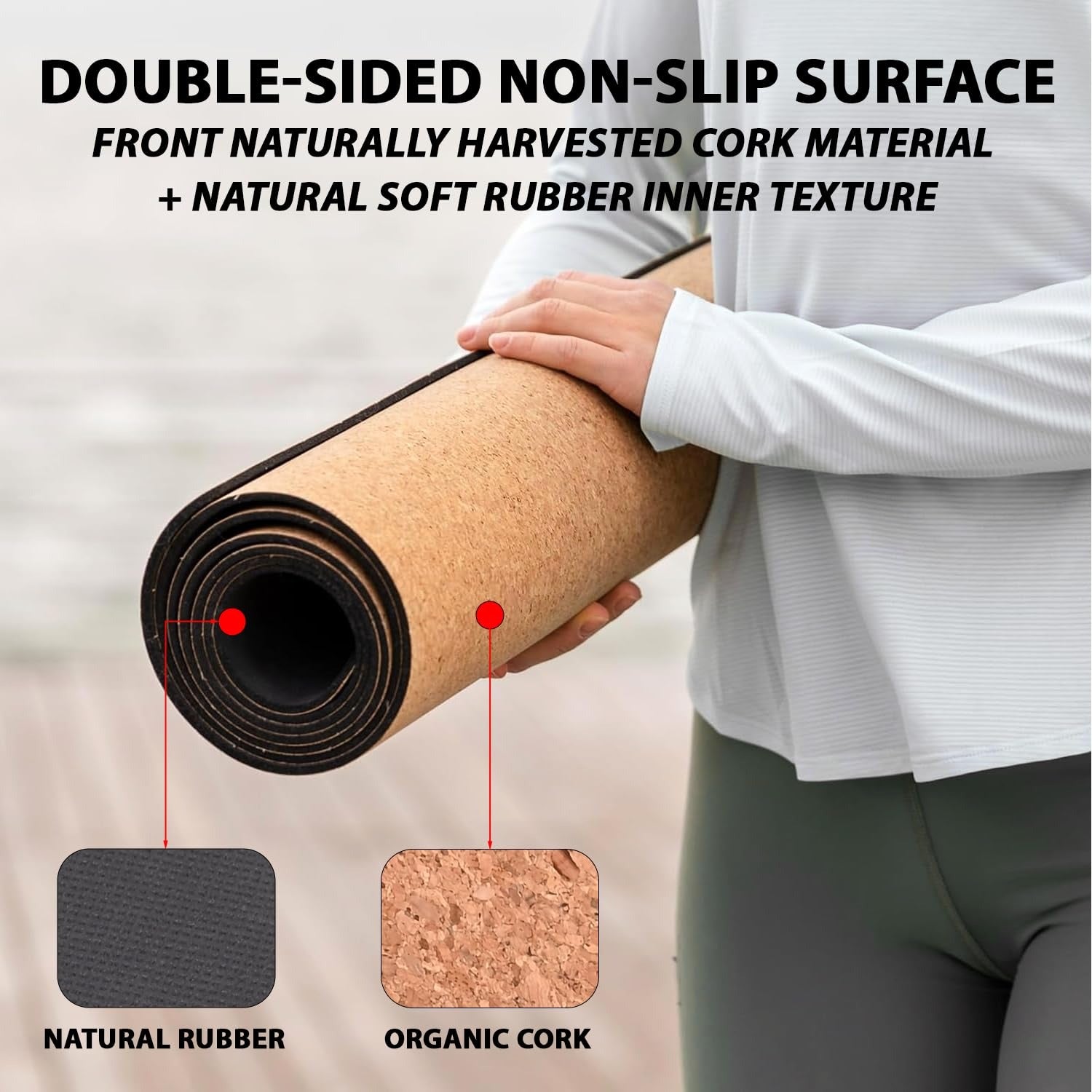 Hacer Yoga Mat 3mm Thickness Unisex Non Slip Anti Tear Cork Exercise Mats