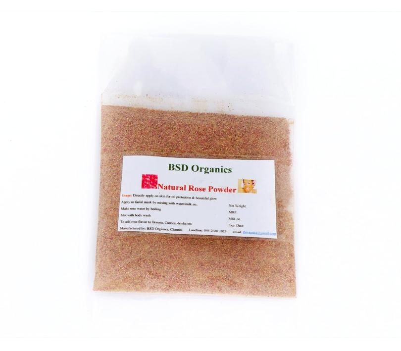 • Uses of BSD Organics natural & edible Rose powder are: Natural rose scented face powder.