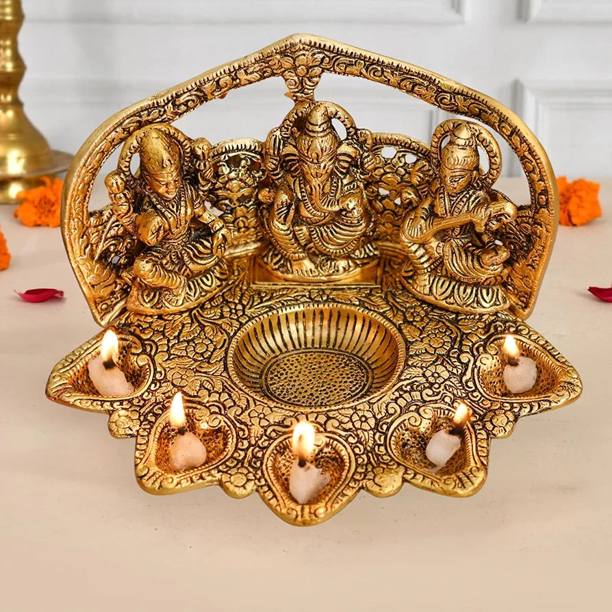Chhariya Crafts Laxmi Ganesh Saraswati Idol with 5 Face Diya