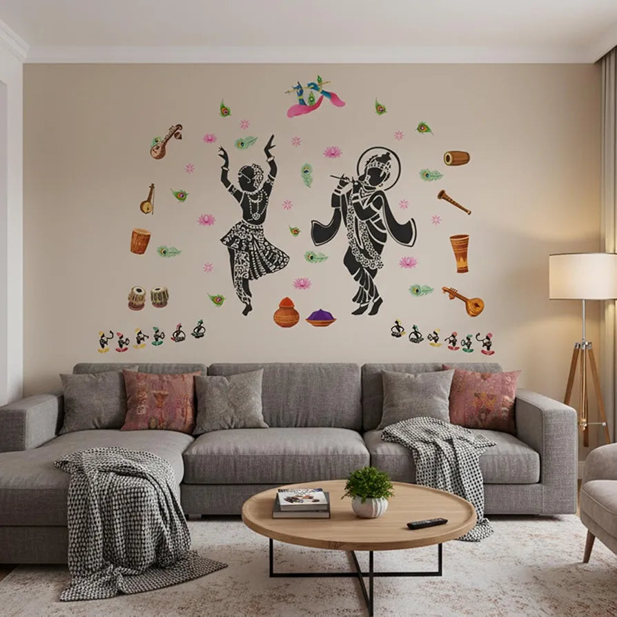 StickMe Lord Radhe Krishna Hindu God Creative Religious Wall Sticker - Self Adhesive Peel & Stick Vinyl Premium Extra Large - 260 x 160 cm