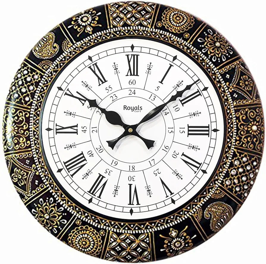 RoyalsCart Floral Designer Painting Wooden Antique Analog Wall Clock Clock Size - 40 cm x 40 cm [KTWC281D] Designer Painting