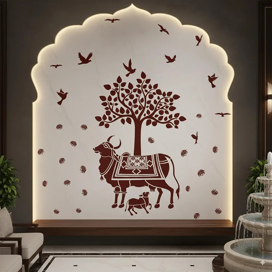 StickMe Kamdhenu Holy Cow and Calf Wall Sticker Self-Adhesive Large - 210 x 210 cm