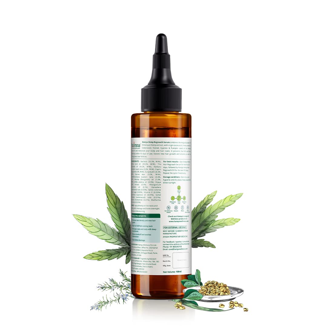 - Hampa Hemp Hair Growth Serum is a wonderous blend of Vijaya Leaf extract, Hemp Seed Oil, Virgin Coconut Oil and carefully chosen herbs, to provide deep nourishment to your hair and roots.