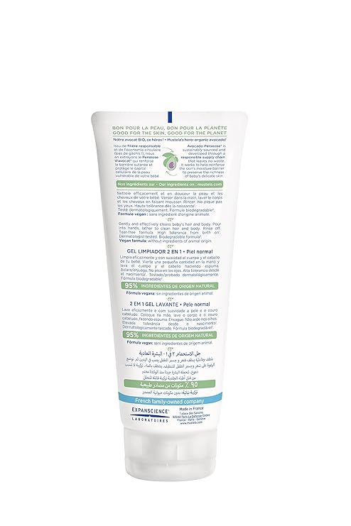 - Cleansing gel, body and hair, ideal for travel from birth on, thoroughly and gently cleanses, maintains the balance of the baby or child skin and delicate scalp. Tear-free formula