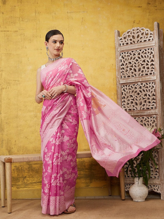 Silk Land Floral Zari Tissue Mysore Silk Saree