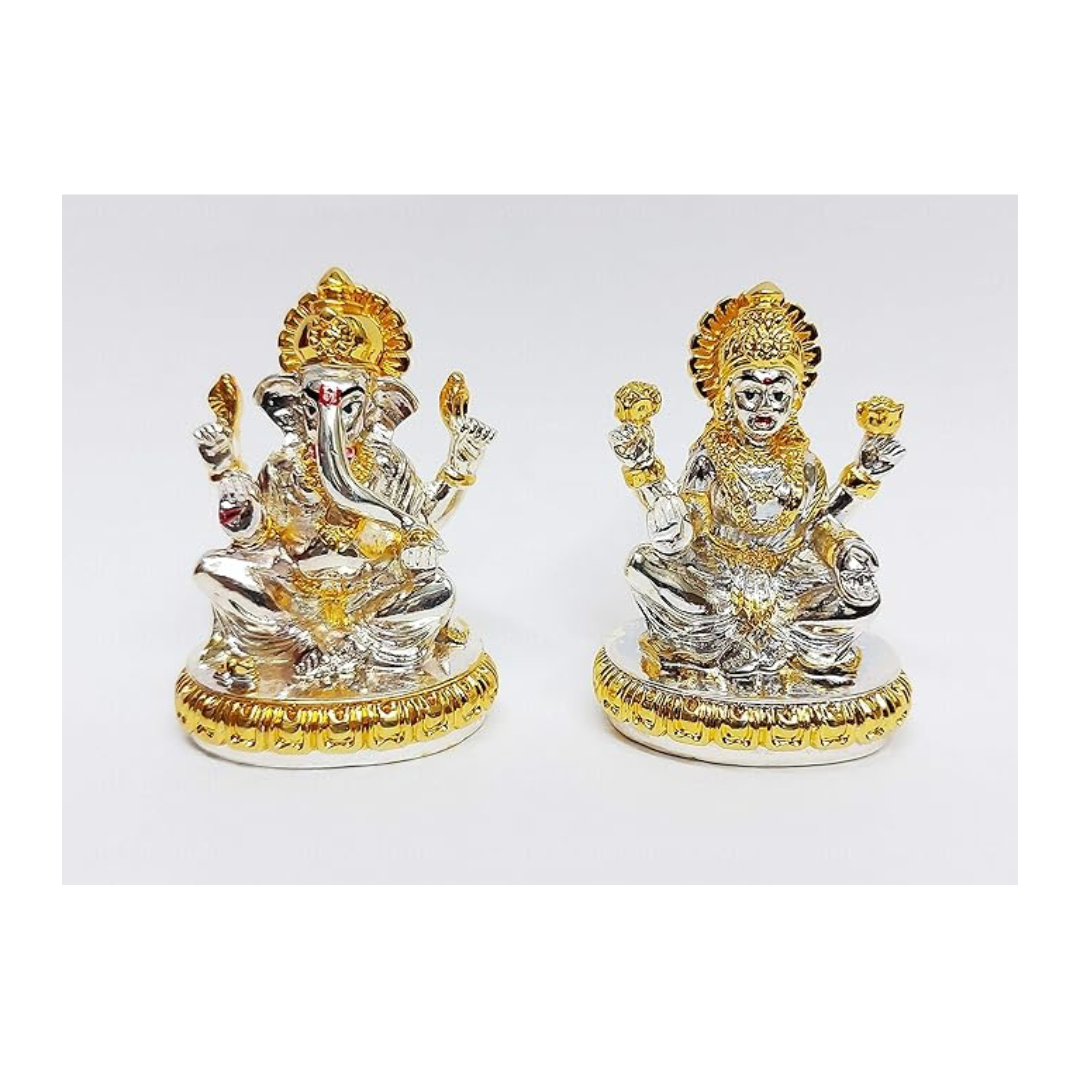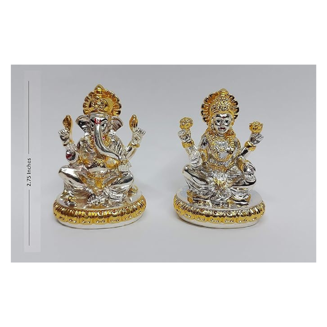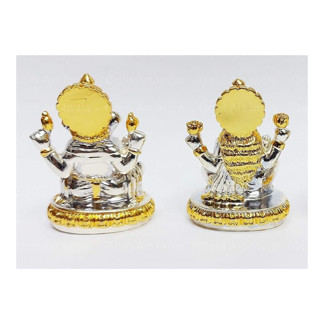 Gold Art India Gold and Silver Plated Laxmi Ganesha Pair Idol Laxmi Devi Gold and Silver Colour