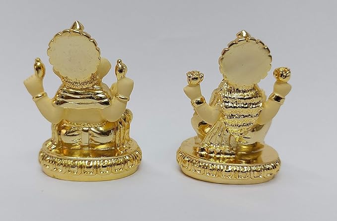 Gold Art India Gold Plated New Chakra Laxmi Ganesha Pair Idol Laxmi Gold Off White Colour