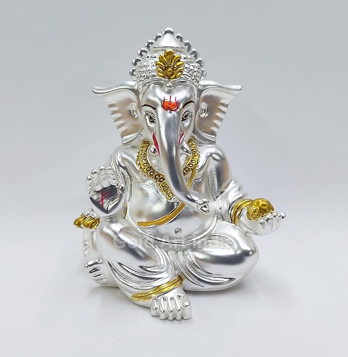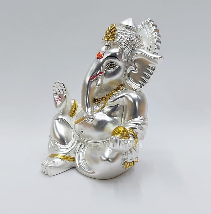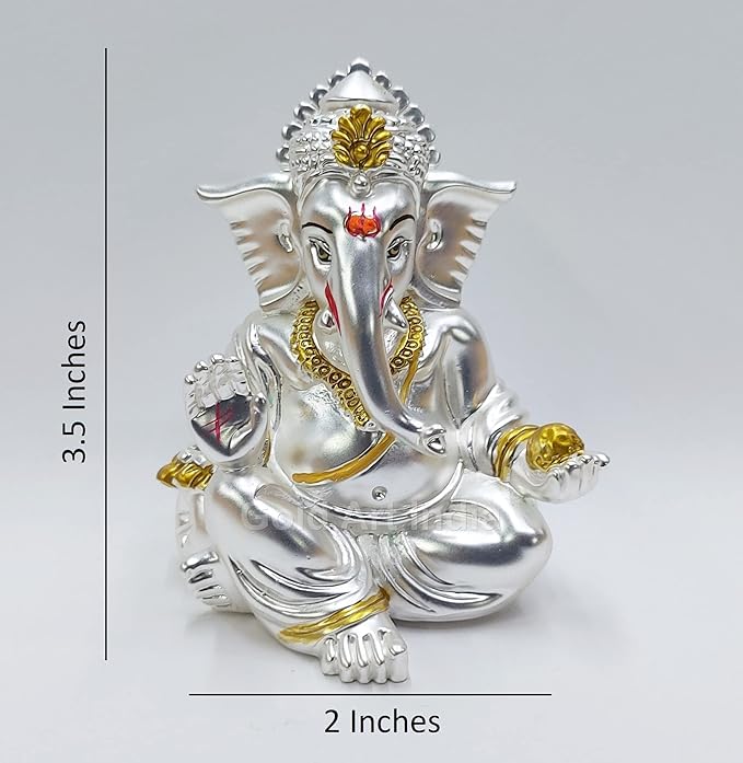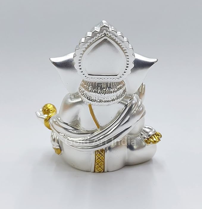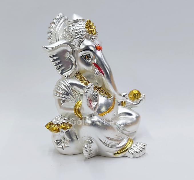 Gold Art India Matte Silver Plated Gaddi Ganesh Idol For Car Dashboard Small Ganesha Murti