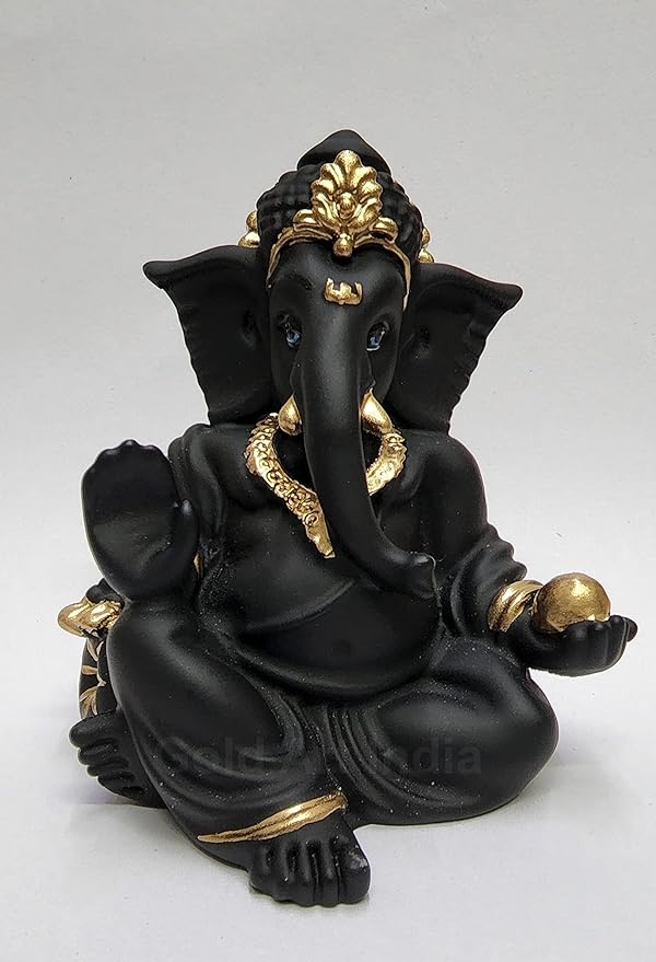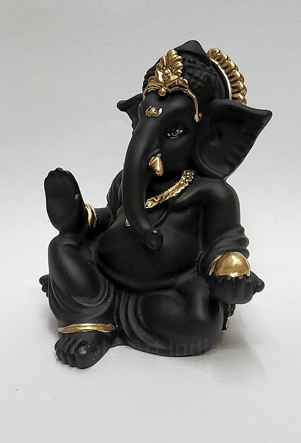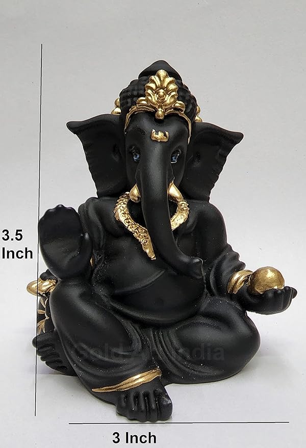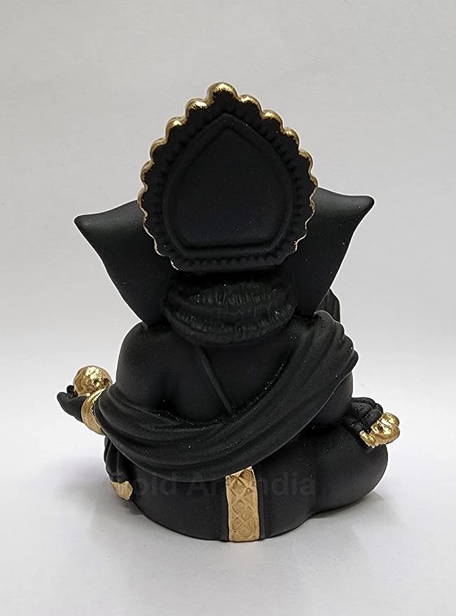 Gold Art India Terracotta Black Gaddi Ganesha for Car Dashboard Home Decor Colour Black