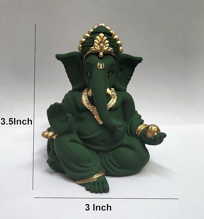 Gold Art India Terracotta Green Gaddi Ganesha for Car Dashboard Home Decor Gadditerracotta green