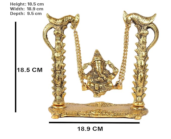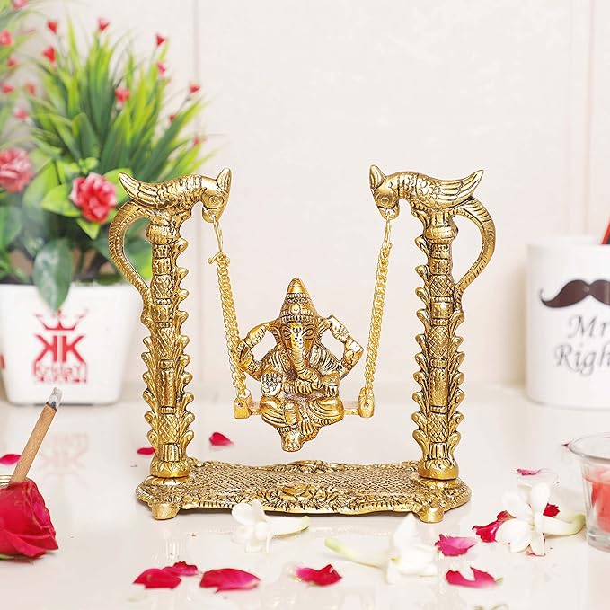 KridayKraft Ganesh ji jhula Ganpati idol on Swing jhula for Pooja Ganesha Metal Statue