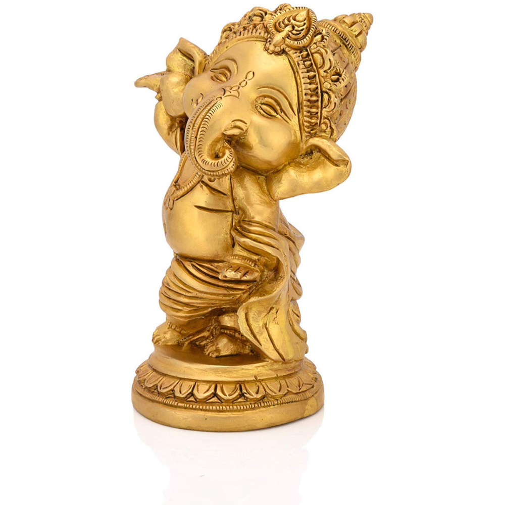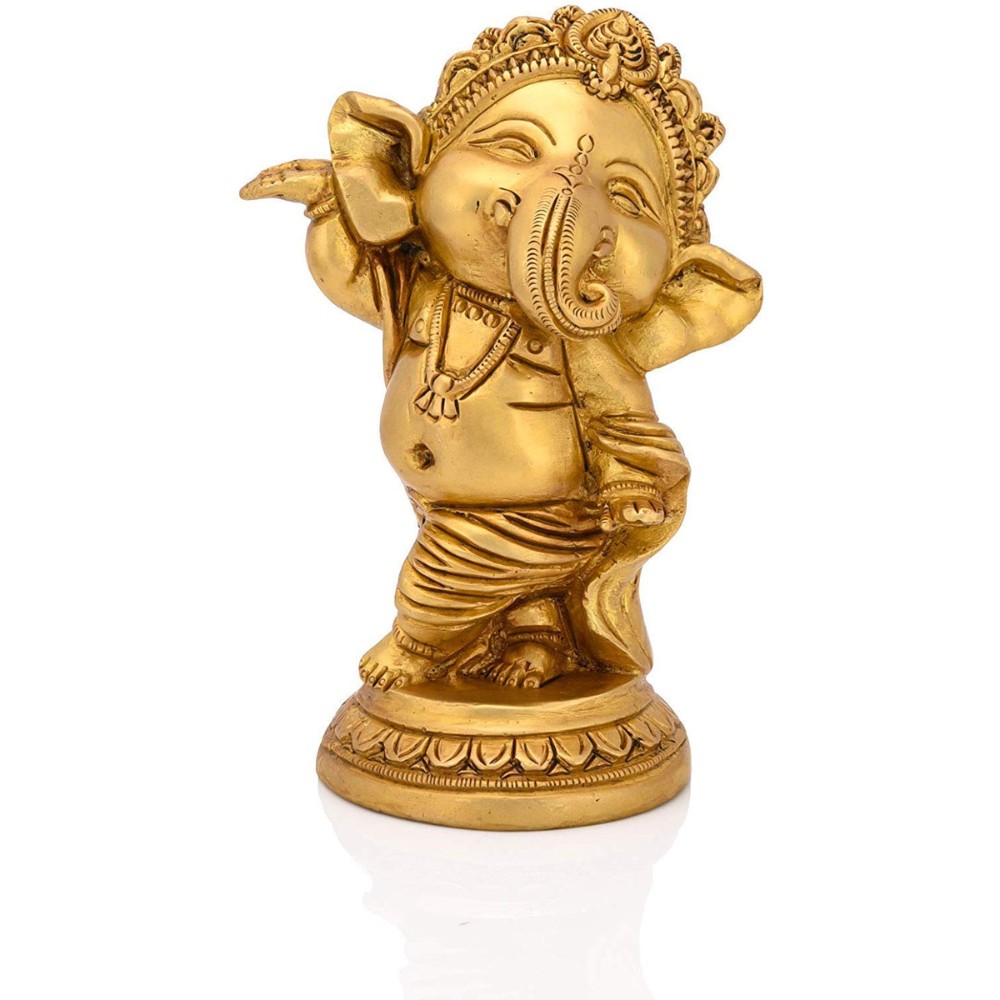 The Advitya Lord Ganesha Idol | Brass Idol | Hindu God Ganesh Ganpati Vinayak Chaturbhuj Statue Murti for Pooja