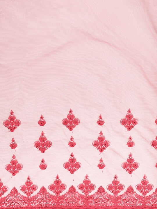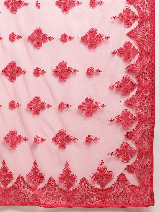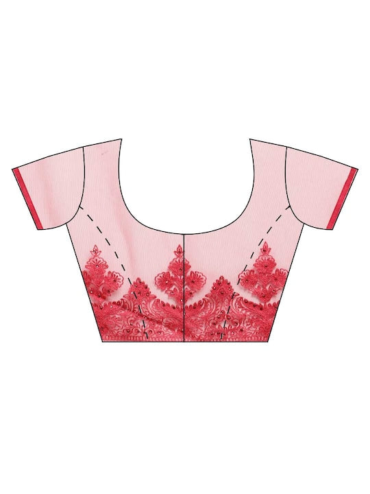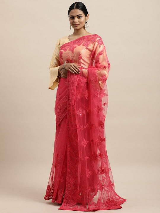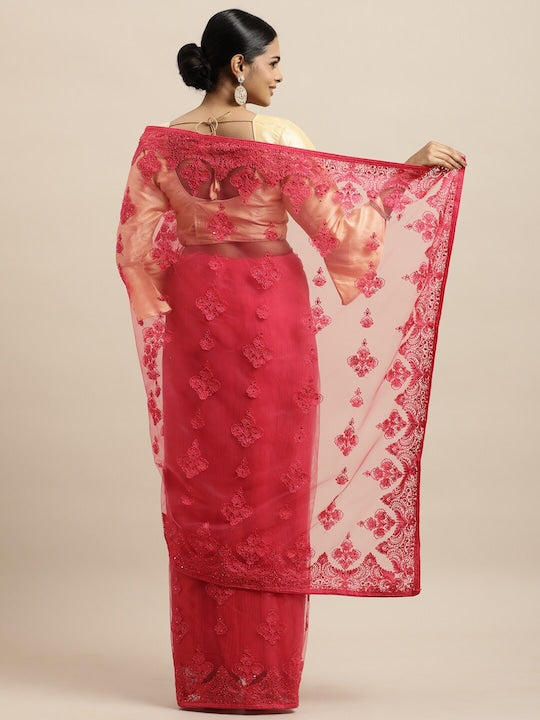 Kasee Red Floral Embroidered Net Saree