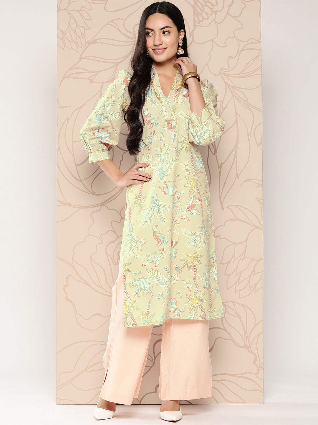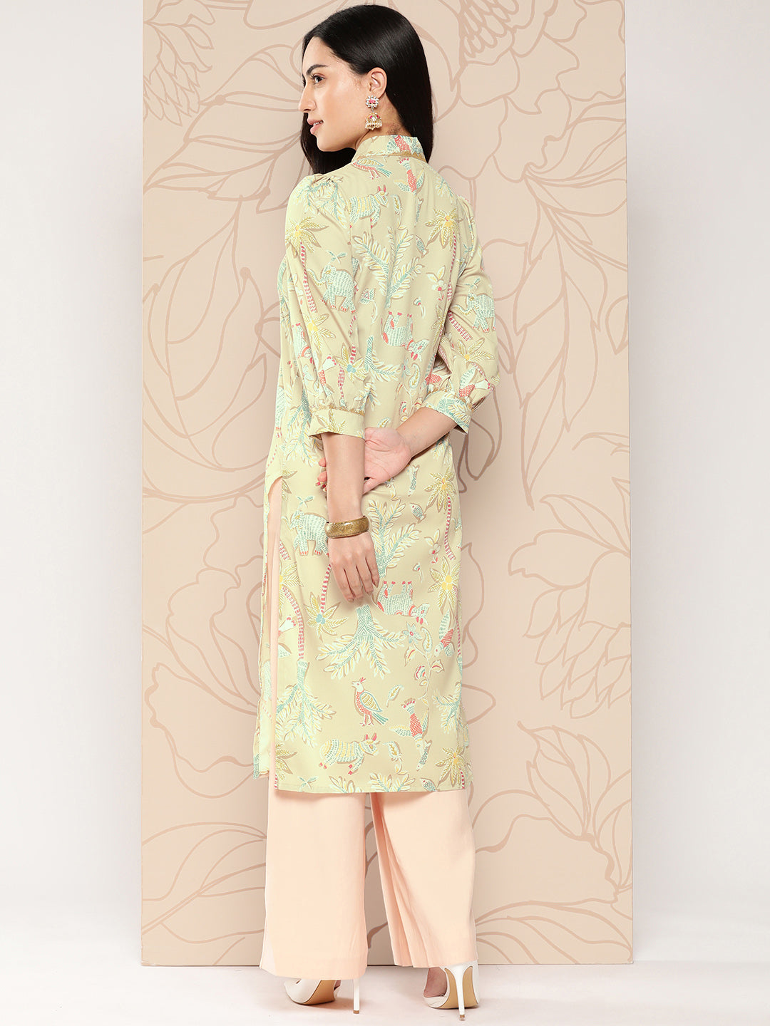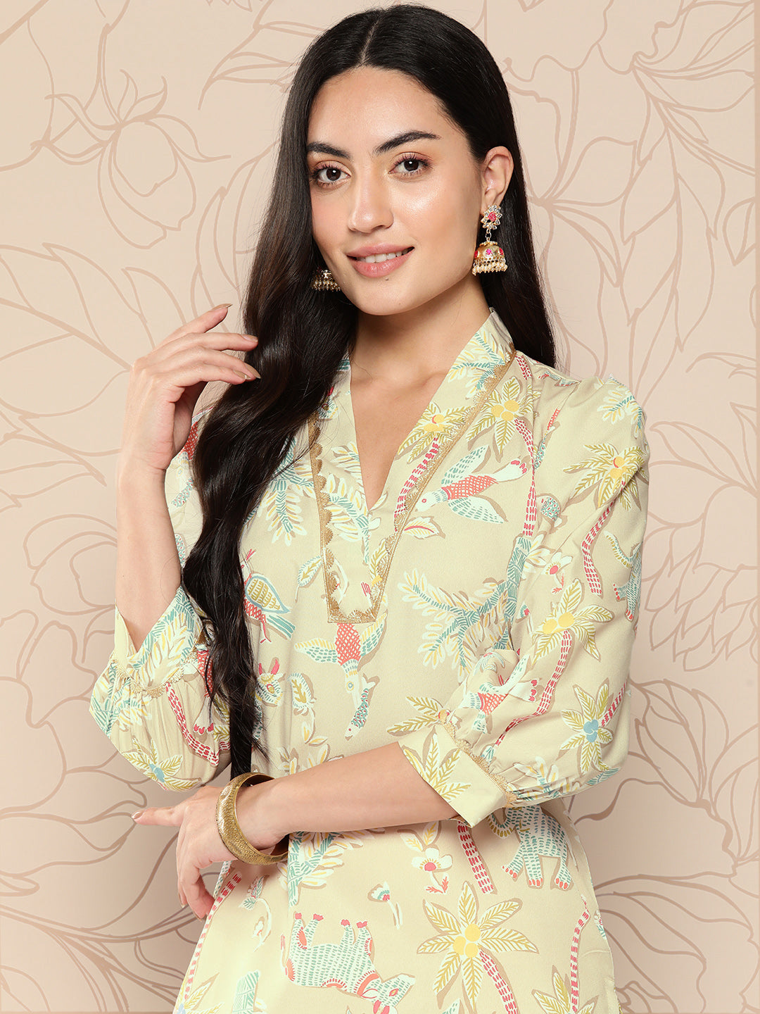 Ahalyaa Women Floral Printed Gotta Patti Crepe Kurta