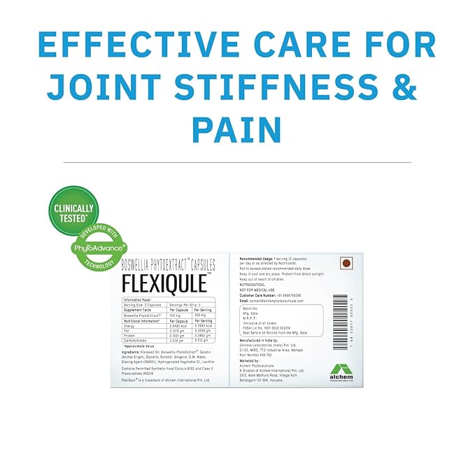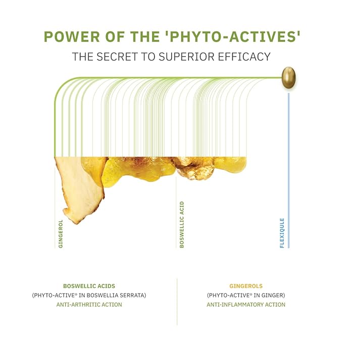 • 'Phyto-actives', High Potency Plant Extracts - The Key To Unmatched Efficacy: Flexiqule, A Phytoceutical Solution That Is A Combination Of The Powerful ‘phyto-actives’ Of Boswellia Serrata And Ginger Which Are Extracted And Synergized Using Proprietary Phyto-advance Technology For Superior Efficacy. These Powerful ‘phyto-actives’ Have Anti-inflammatory, Anti-arthritic And Pain-relieving Properties.
