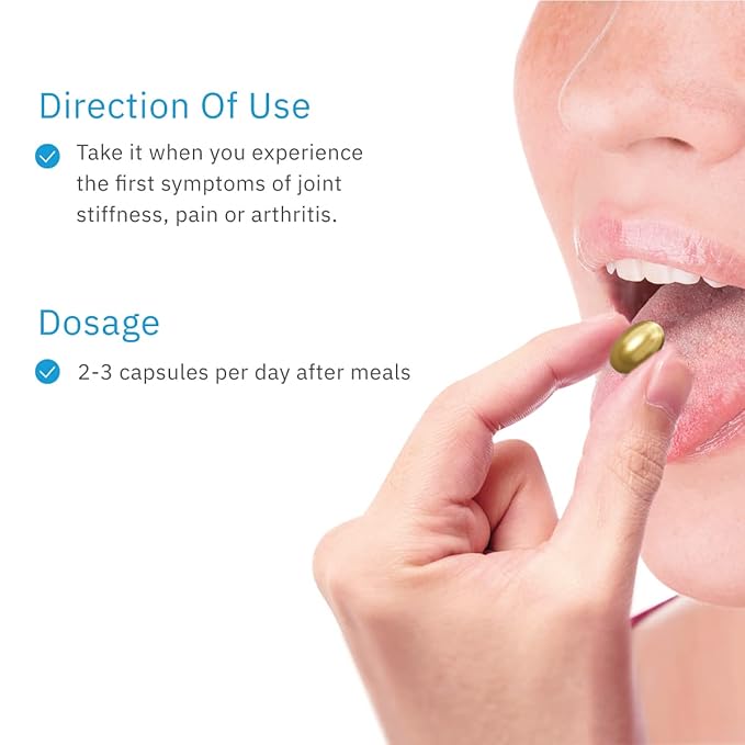 • Direction Of Use & Dosage: Take It When You Experience The First Symptoms Of Joint Stiffness, Pain Or Arthritis. Recommended Dosage Is 2 Capsules Per Day, After Meals. Consume Daily For A Minimum Of 15 Days To Experience Visible Results.