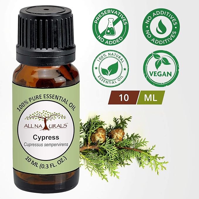 • Pure and Natural Oil for Aromatherapy: All Naturals Cypress Essential Oil with a sweet balsamic pine needle odor has a balancing, clarifying, and centering effect for supporting good mood, better energy, and a cleansed aura.