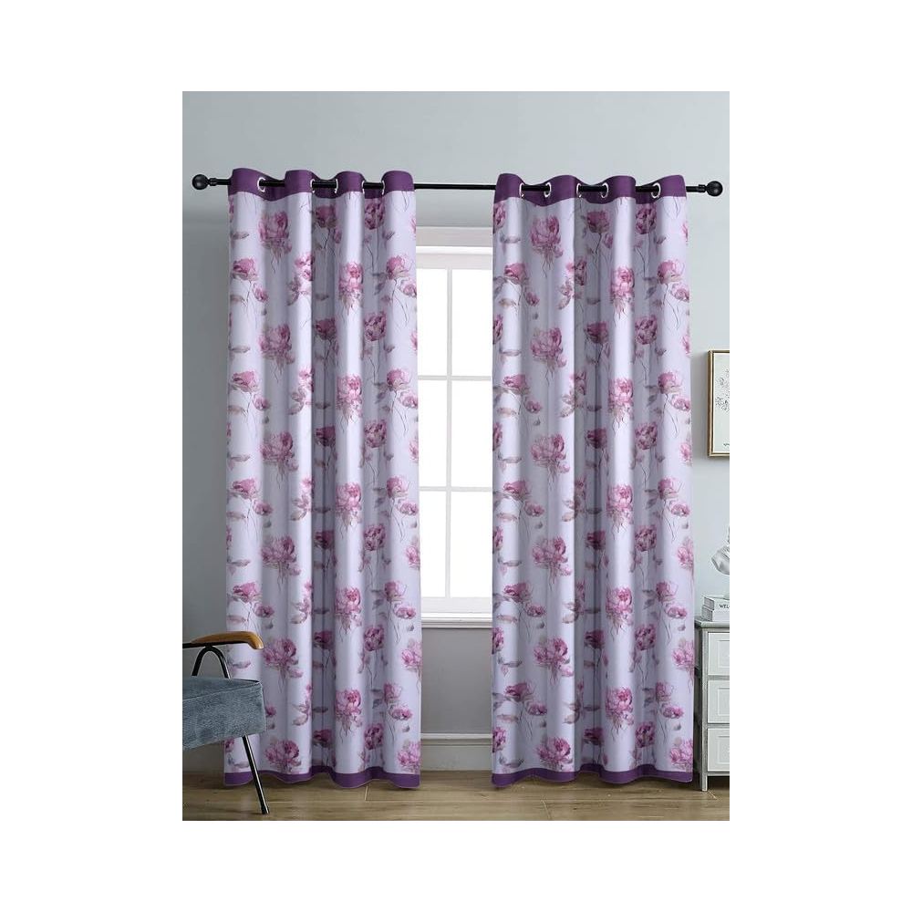 Cortina Double Sided Printed Reversible Door Blackout Curtains 220 Gsm | Door-7 Feet | White | Purple