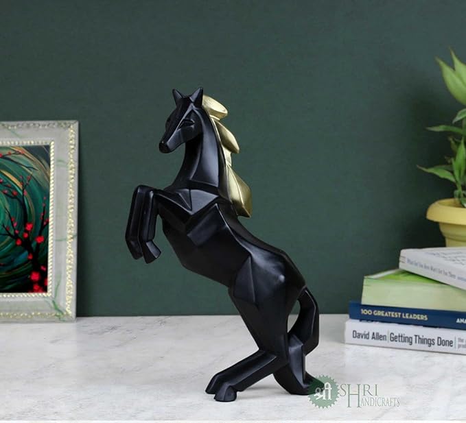 Indicast 11" Inch Abstract Black Charging Horse Sculpture Figurine Handicraft Home Desk Decor Geometric Resin Wildlife Statue | Black