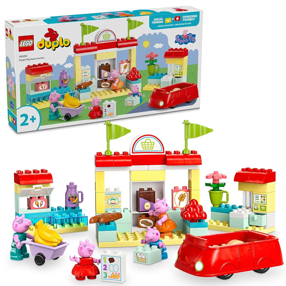 Shopping role-play fun for girls and boys aged 2+ – Help preschoolers recreate scenes from their favourite TV show with the LEGO DUPLO Peppa Pig Supermarket toy - Comes with 4 figures – This fantasy playset includes a drivable car, George, Mummy, Daddy and LEGO DUPLO Peppa Pig toy figures, for a full range of character role play