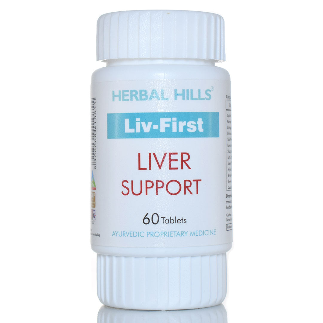 Herbal Hills Liv-First Tablet is a thoughtfully crafted herbal formulation made with traditionally used botanicals such as Guduchi, Kalmegh, Bhringraj, and Punarnava.