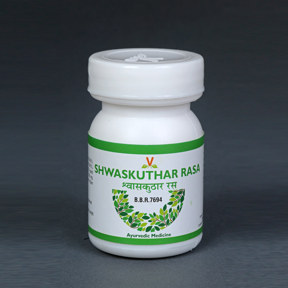 • Virgo UAP Shwaskuthar Rasa is an herbomineral Ayurvedic formulation useful in respiratory disorders. The formulation of this medicine contains Parad, Gandhak, Vatsanabh, Tankan, Manashila, Maricha, Pippali, Sunthi with Bhavana dravya Tambula Patra Swarasa.