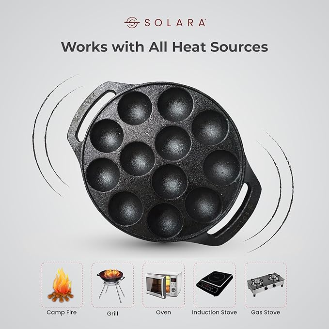 • Ready to Use: SOLARA Cast Iron Paniyaram Pan comes pre-seasoned for instant use. The non-stick surface elevates flavors and simplifies your cooking experience.