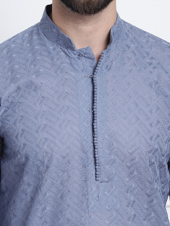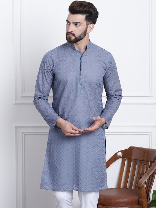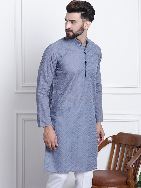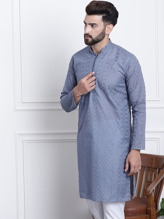 Sojanya Men Grey Ethnic Motifs Embroidered Chikankari Kurta