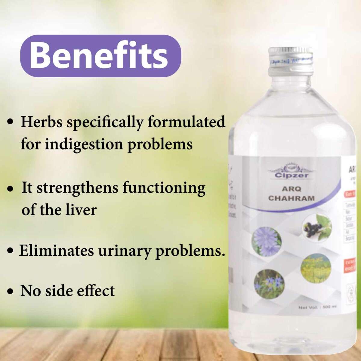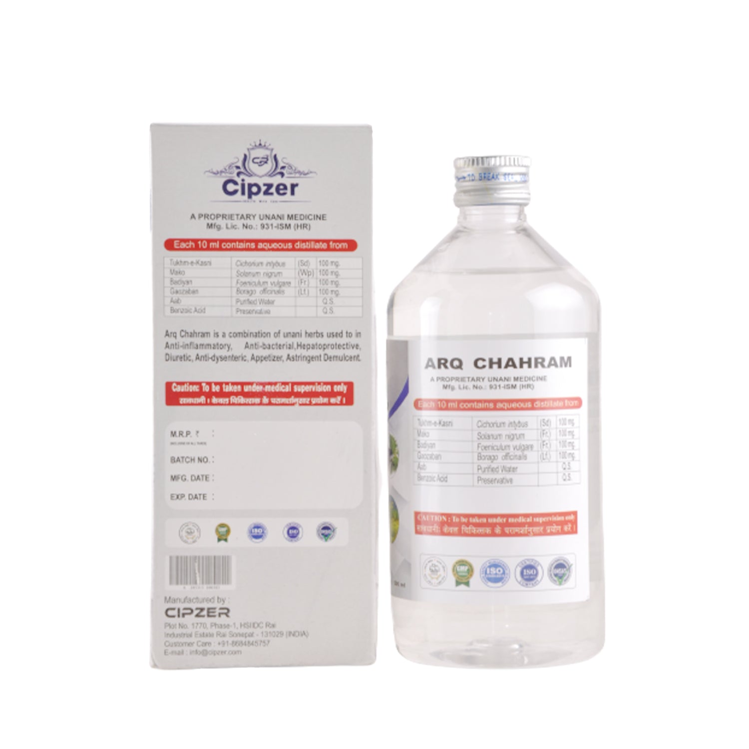 - Cipzer Arq Chahram is a proprietary Unani medicine and a combination of herbs that contain anti-bacterial and anti-dysenteric properties.