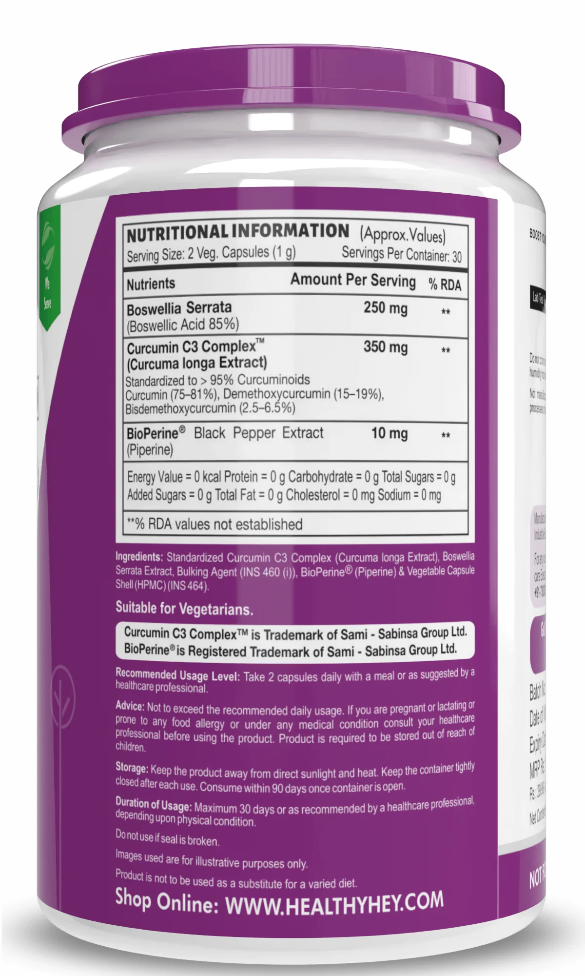 HealthyHey Boswellia Serrata & Curcumin with Bioperine - 60 Vegetable Capsules