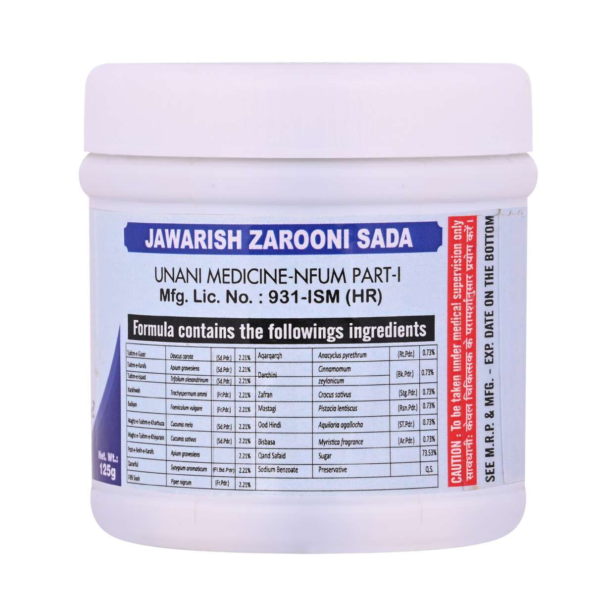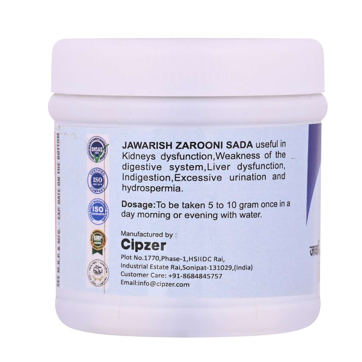 - Jawarish Zarooni Sada useful in Kidneys dysfunction, Weakness of the digestive system, Liver dysfunction, Indigestion, Excessive urination and hydrospermia.