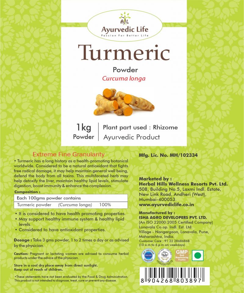 - Turmeric or Haridra is also known as Curcuma / Curcuma longa which is synergistically processed with highly advanced technology.