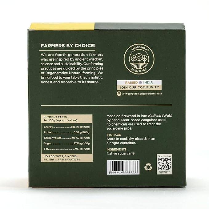- RIGHT PREPARATION - Prepared in an iron kadai (wok) on firewood. Plant based coagulant, Okra (ladies finger) pulp used to treat sustainably grown sugarcane juice. This product contains no additives, is free from artificial preservatives, synthetic fillers or binders. 100% natural, farm made.