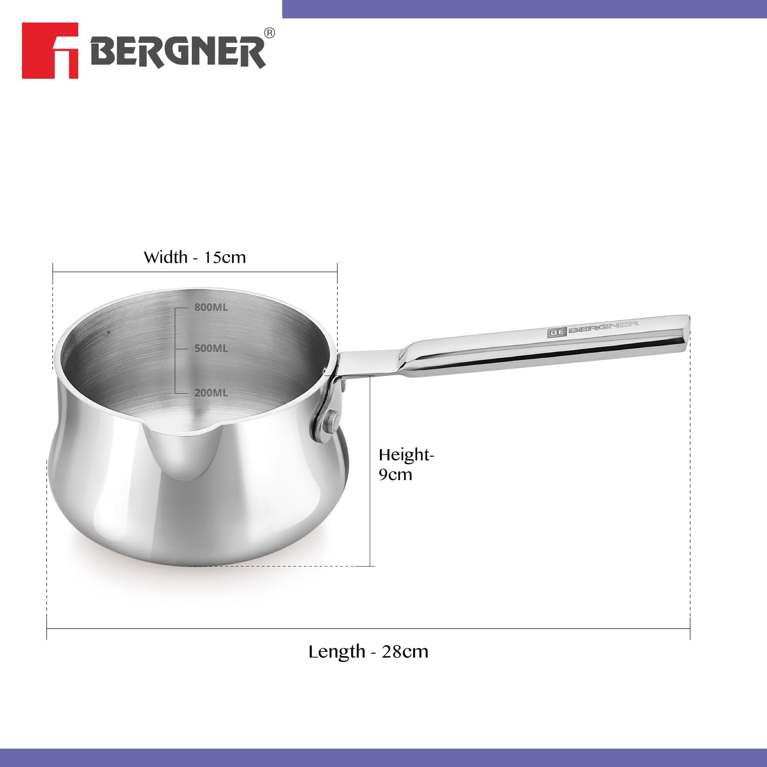 Bergner Be Bergner Essentials Tri-ply 12 Cm Stainless Steel Coffee Warmer/milk Warmer Pot With Steel Handle
