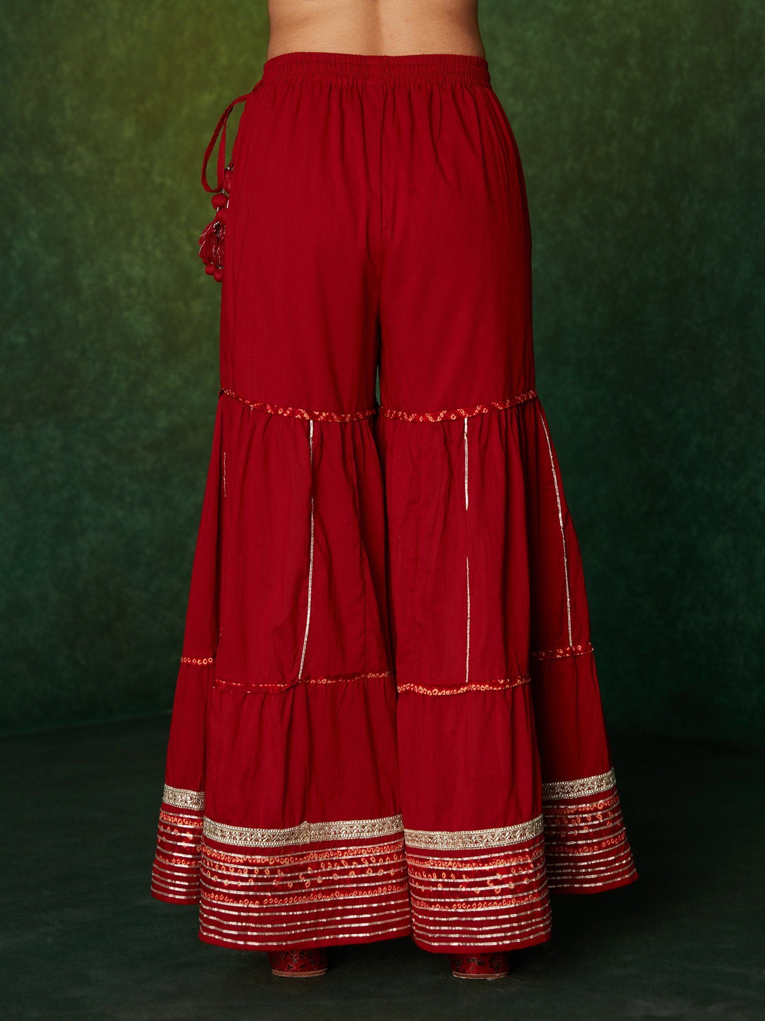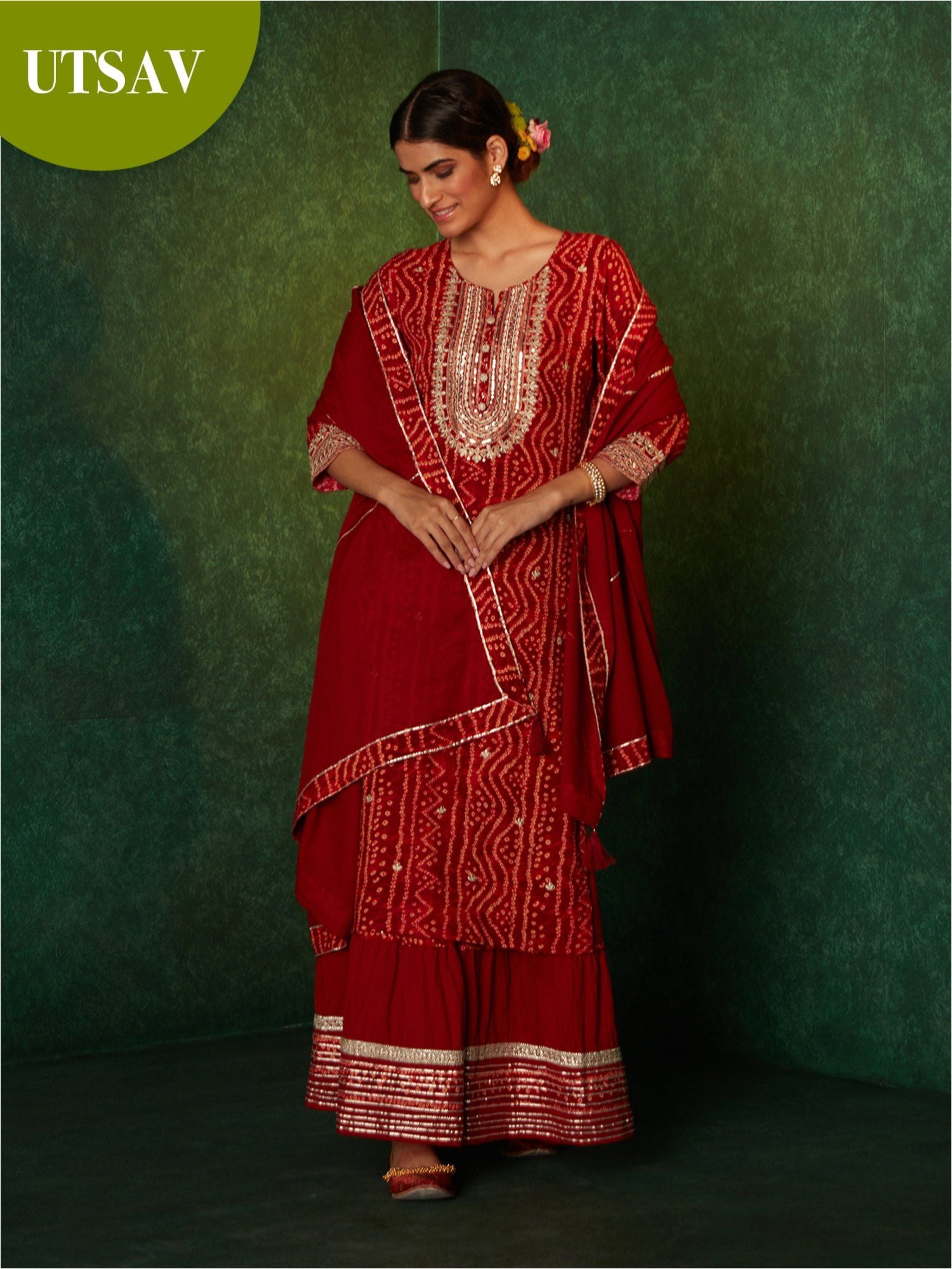 Likha Bandhej Maroon Zari Mirror Work Sharara Set with Dupatta LIKSKD152 (Set of 3)