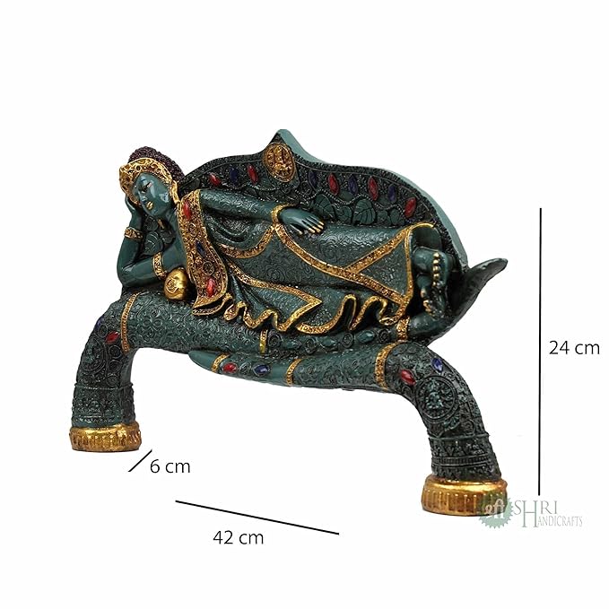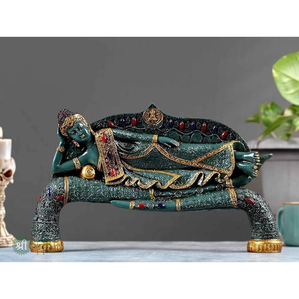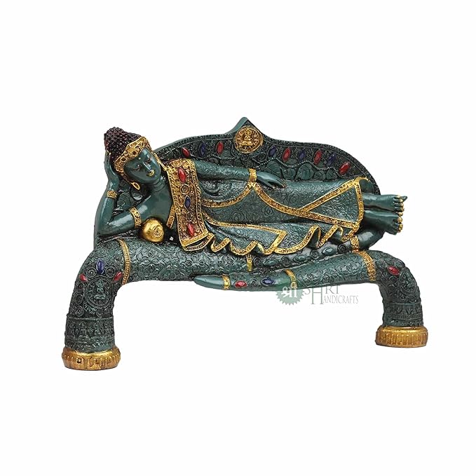 Indicast 15" Inch Handmade Buddha Sleeping Murti Stone Finish Meditating Idol Gifts Antique Design | Green