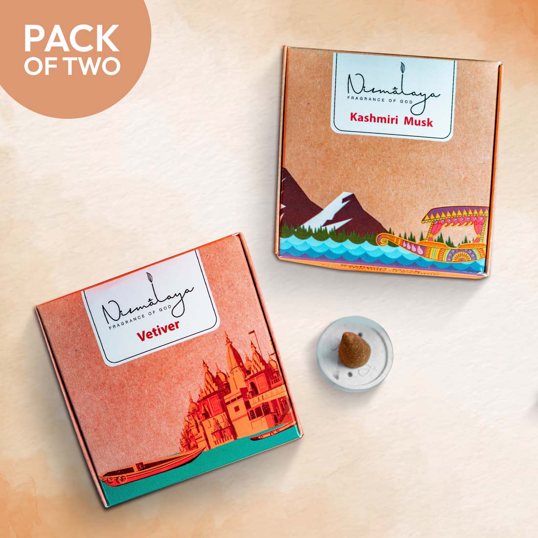 • Discover the true sense of India with Kashmiri Musk and Vetiver incense cones packs. With the fragrances of Incredible India, these aromas will uplift your mood and alleviate any stress.
