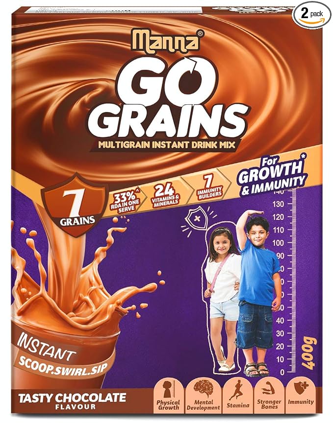 • Manna GoGrains delivers 33% RDA *of 11 Minerals and 13 Vitamins in one serve for your Childs overall growth and development along with multigrain goodness. (*RDA Recommended Dietary Allowances ICMR 7-9 Yrs)