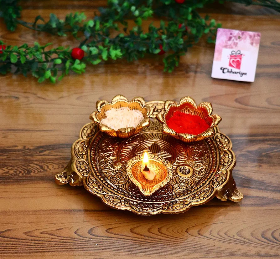 Chhariya Crafts Pooja Thali With Diya for Home and Office Temple