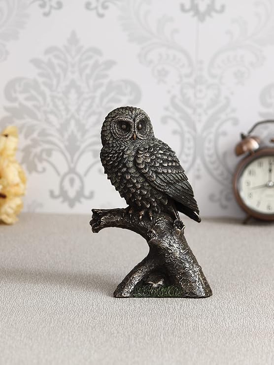 - Package Content: One Handcrafted Polyresin Bronze Finish Owl Statue Bird Sitting on Branch Figurine Decorative Showpiece
