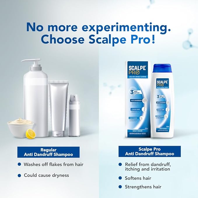 - Unique 3 way action of Scalpe Pro provides 3 benefits - Anti dandruff, Strong hair & Conditioning