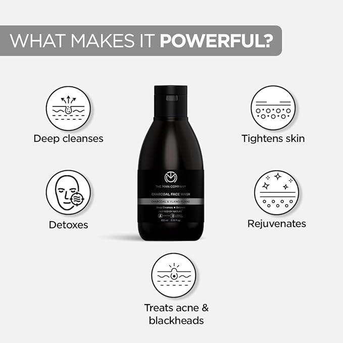 The Man Company Activated Charcoal Face Wash for Men with Ylang Ylang & Argan Essential Oils - 100ml
