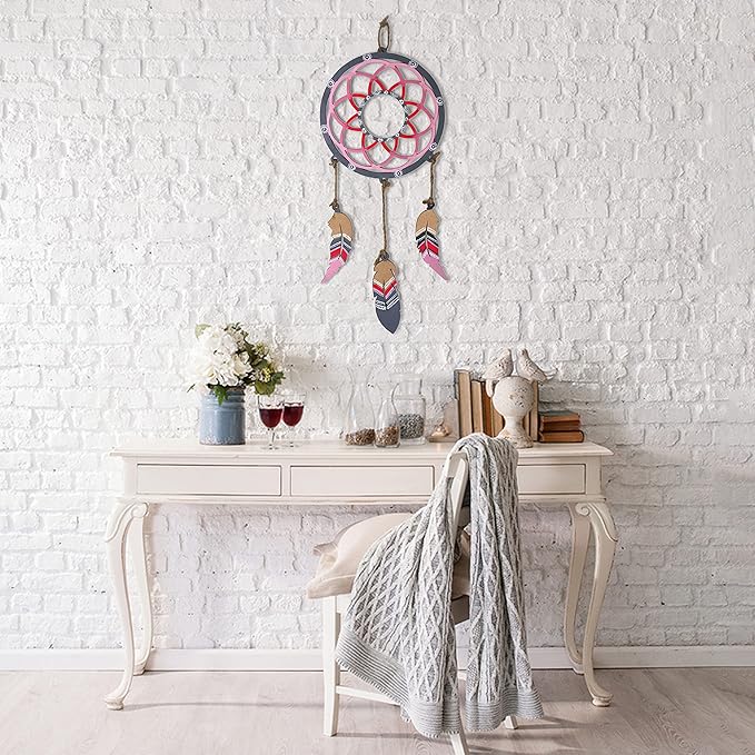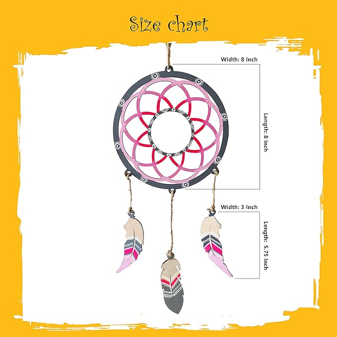 • HOME DECORATION ITEM - This beautiful wall hanging dreamcatcher which will fill a blank wall and give the dream house a flair. It will looks gorgeous in a bedroom, sitting room, baby nursery, balcony, studio or in your living room as a stylish and cozy decor. You can hang it anywhere: above the sofa, fireplace, desk or on the top of your bed. Great Gift Choice : Gift this Dream Catcher Wall Hanging Kit to your near and dear ones. It will best fit great for outdoor decor, wedding decor, engagement party, ceremony backdrop, house warming and rustic interior concepts. It represents blessing, pray for peace and good luck.