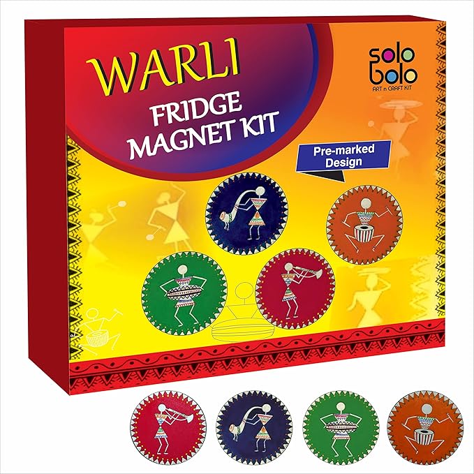 Solobolo Warli Art Painting Kit | Decorative Fridge Magnets for Kitchen | 4 Pre Marked Diy Painting Kit Fridge Magnets